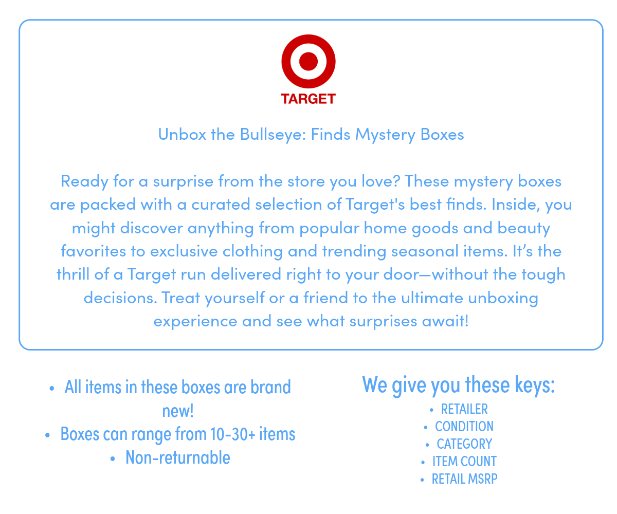 Quick view Compare Add to Cart TARGET FINDS MYSTERY BOX - Home and Office Supplies - Lot of 23 - MSRP $230.00 MSRP: $230.00 Was: Now: $46.00 Quick view Compare Add to Cart